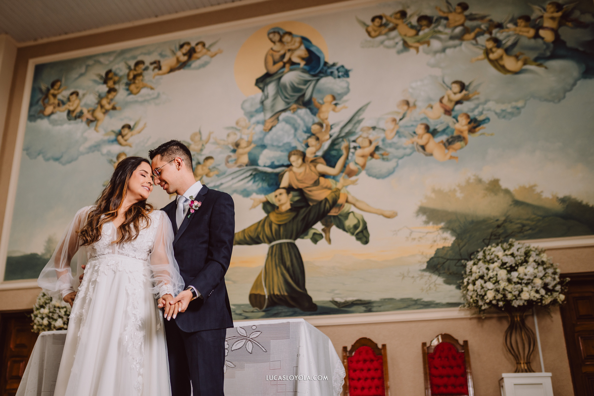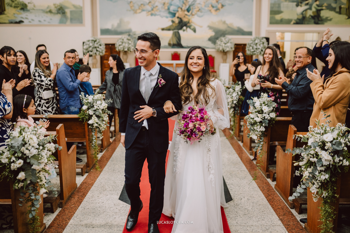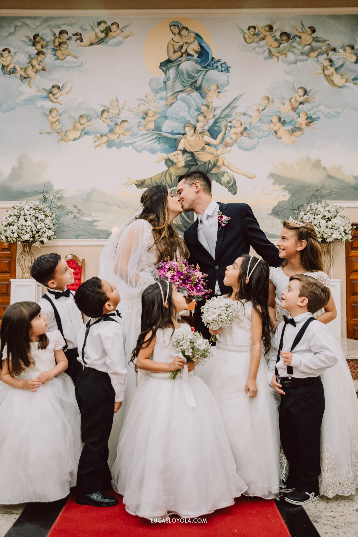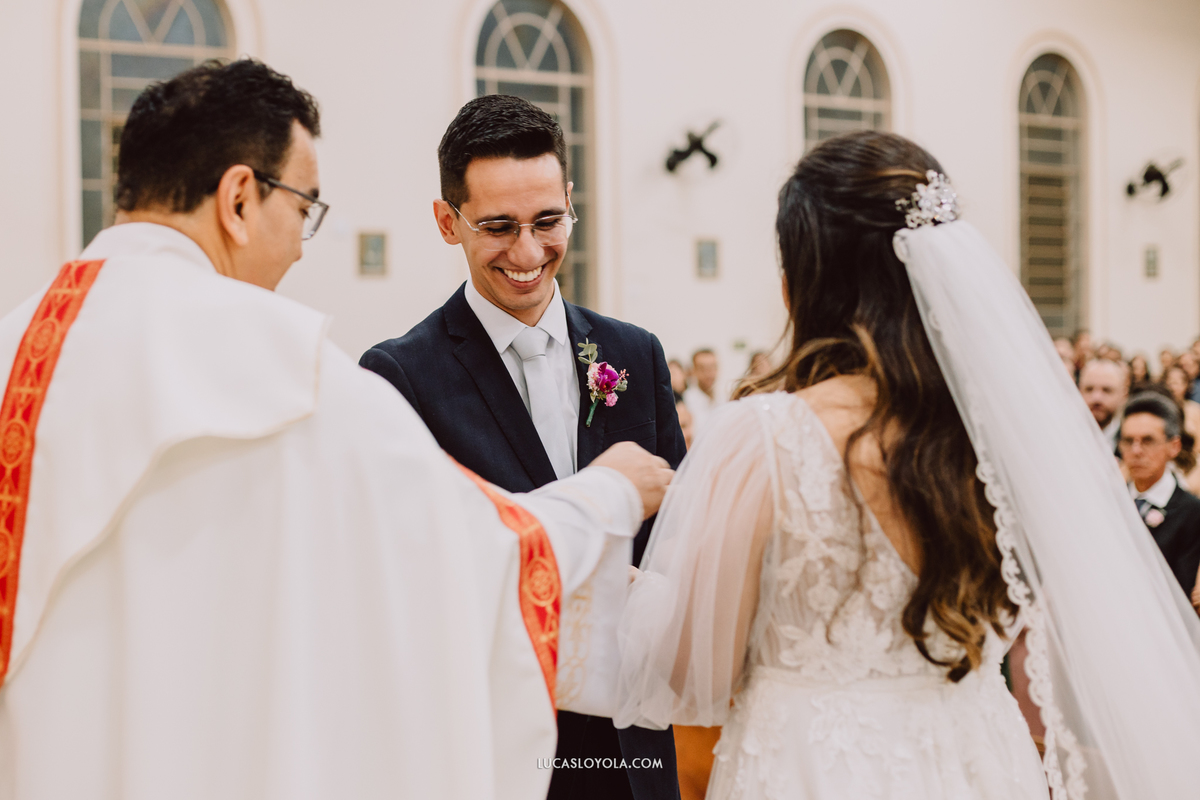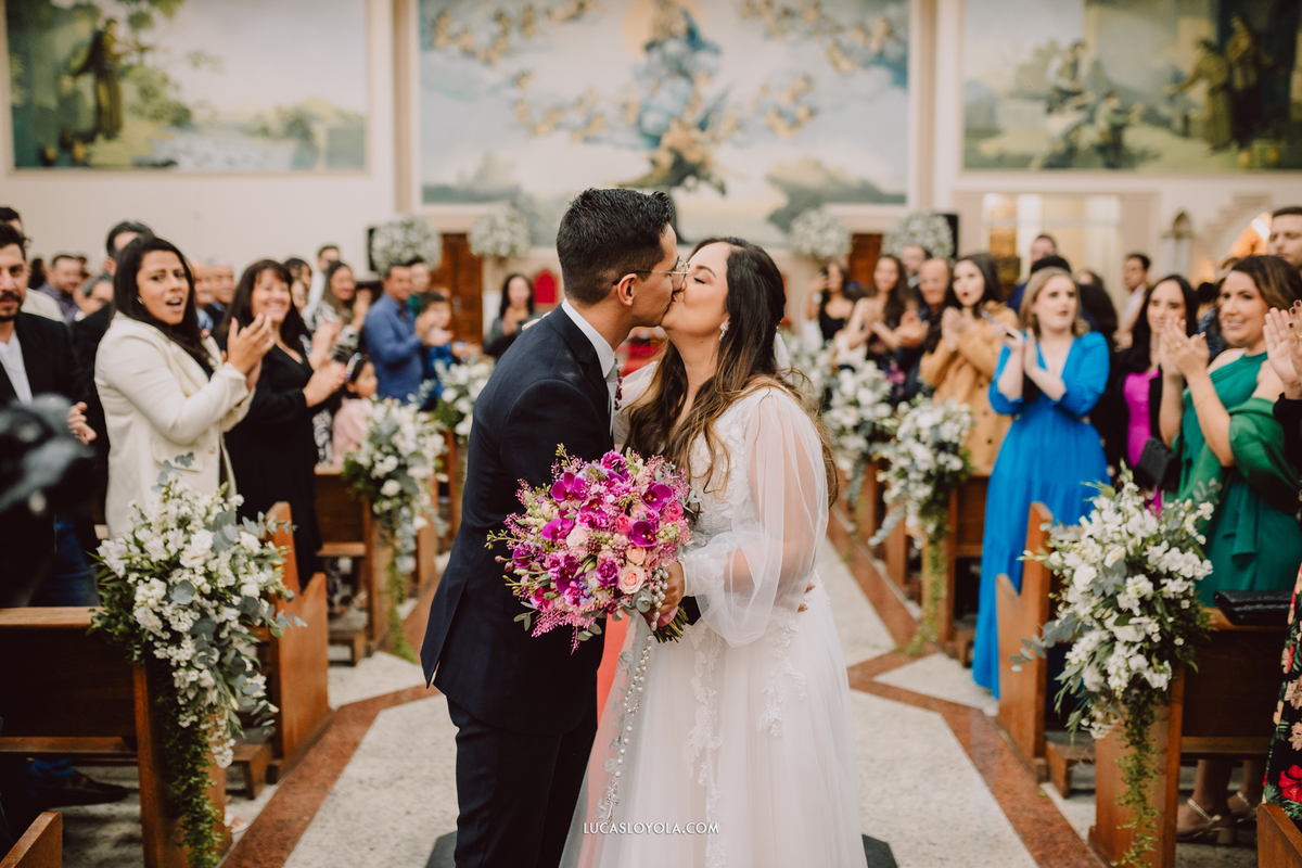 A cerimônia na linda Igreja de Santo Antônio, em Pouso Alegre, foi incrível, a troca de alianças, entradas das damínhas, os olhares apaixonados, e claro, aquele momento especial quando eles se tornaram oficialmente marido e mulher.