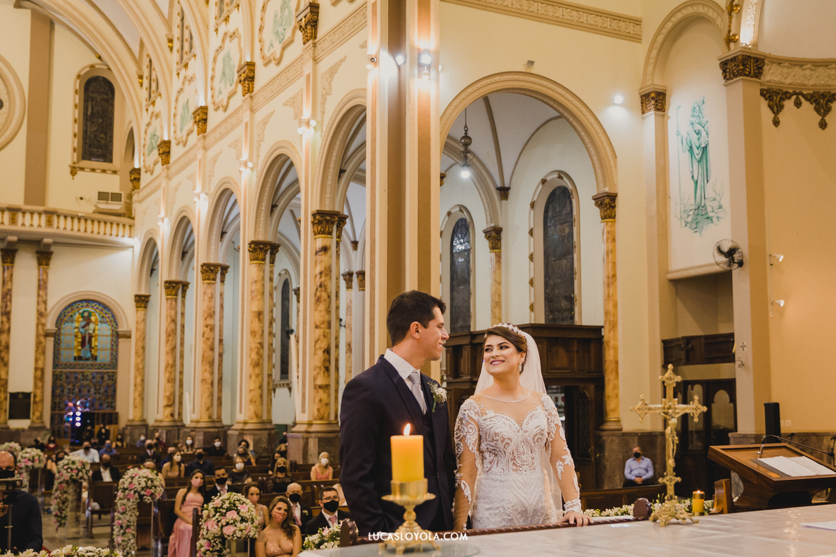 O casamento deles aconteceu na Catedral Metropolitana de Pouso Alegre! Uma igreja maravilhosa que estava ainda mais bonita com a decoração do Allyson Paiva!