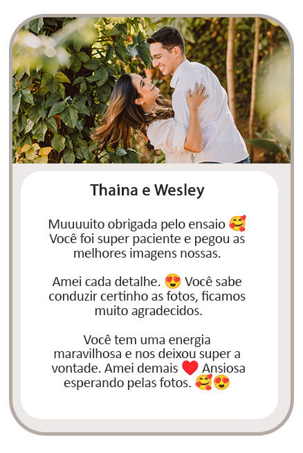 Por ser fotografo profissional, dominamos as técnicas de linguagem corporal para garantir que as fotos fiquem verdadeiras e bonitas!