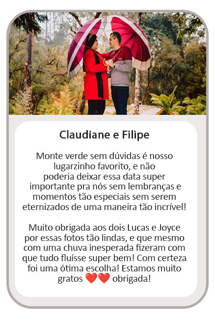 Logo abaixo temos um pacote especial para ensaios de casal feitos em Monte Verde!