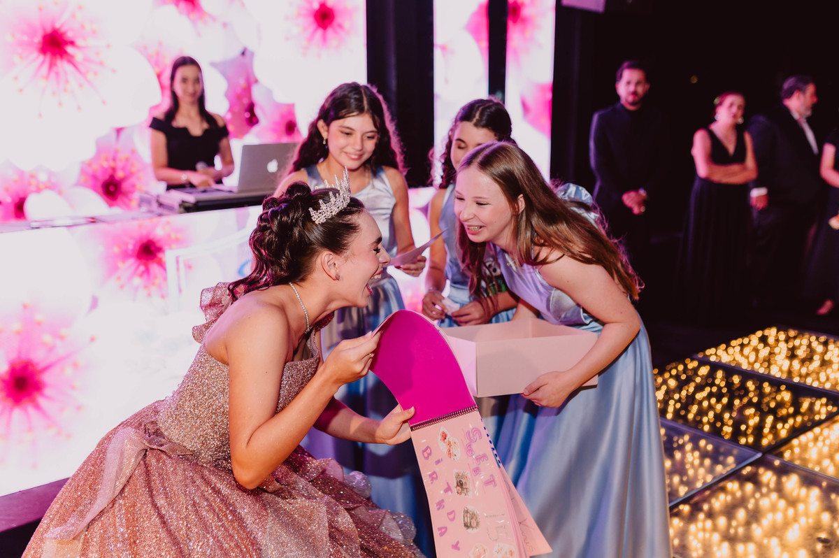 Foi uma noite marcada por homenagens lindas das amigas e da família, daquelas que fazem o coração transbordar. E claro, uma festa super animada, com energia lá em cima do começo ao fim.