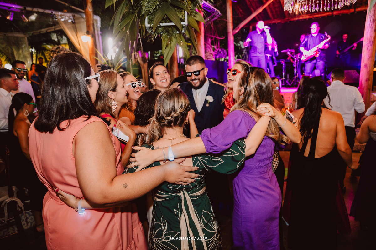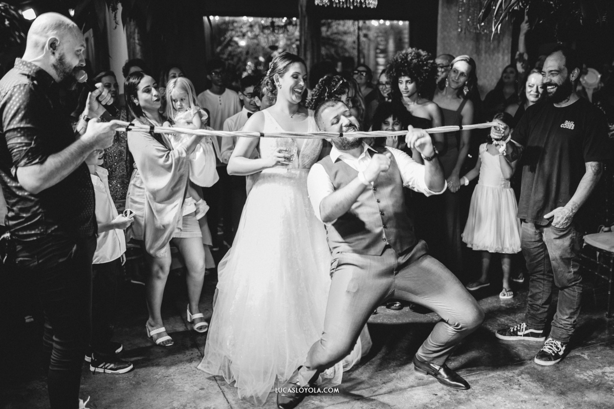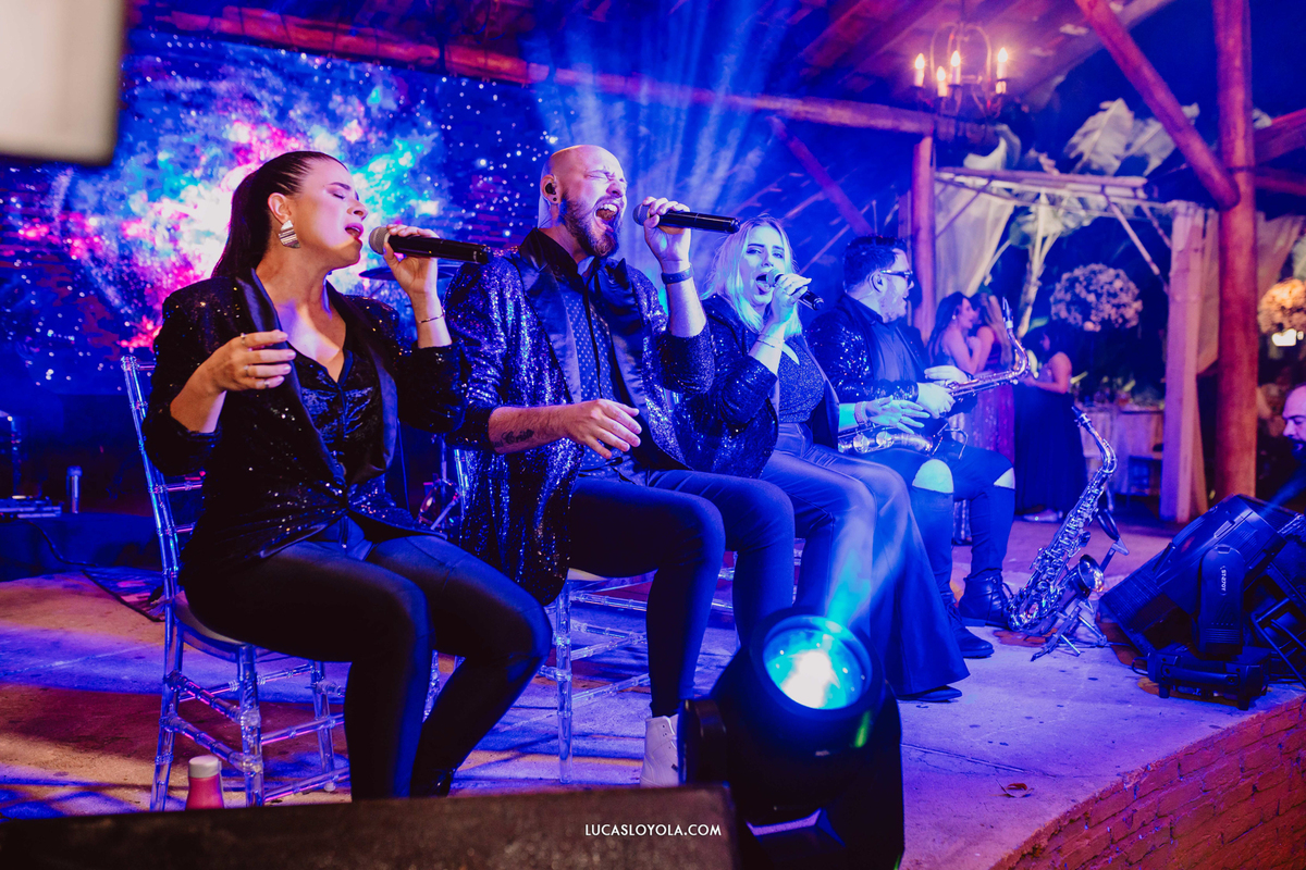 A festa aconteceu na Casa do Compadre e foi pura animação! Teve de tudo um pouco, mas o momento mais inesquecível foi quando dois amigos dos noivos fizeram uma surpresa hilária ao estilo "As Branquelas". Imaginem só: risadas, diversão e muita energia positiva tomando conta de todos os convidados. Foi realmente uma noite para guardar na memória!