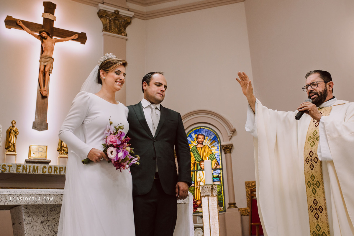 O primeiro casamento deles aconteceu num lugar super especial para eles, a Capela do Colégio São José, lugar onde os dois estudaram! Foi uma cerimonia intimista e muito bonita!