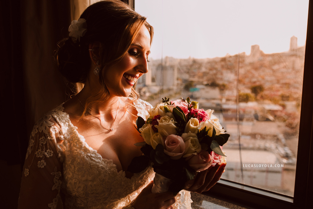 Nós que acreditamos que Deus sempre está lá para abençoar a união dos nossos casais não poderíamos ficar mais surpresos com algo que aconteceu durante os primeiros momentos da cerimônia! Era como se um raio de sol viesse lá de fora para os abençoá-los! E foi exatamente isso que aconteceu! Já viu por do sol dentro de uma igreja? Para nós foi a primeira vez!!